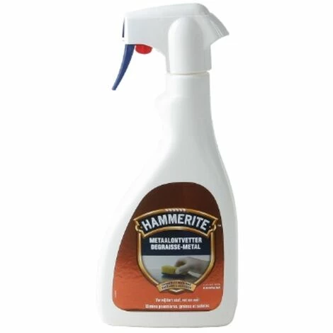 Ce dégraissant métal de Hammerite est un solvant dégraissant qui nettoie et dégraisse les métaux avant l’application de la peinture. Il élimine la graisse, la suie, la poussière et autres saletés des objets en métal nu ou peint. Il s’utilise pour tous les métaux, les carrosseries, les machines, les grillages, l’acier structuré… C’est le produit idéal pour préparer un support à peindre. Le vaporisateur permet une application facile du produit.