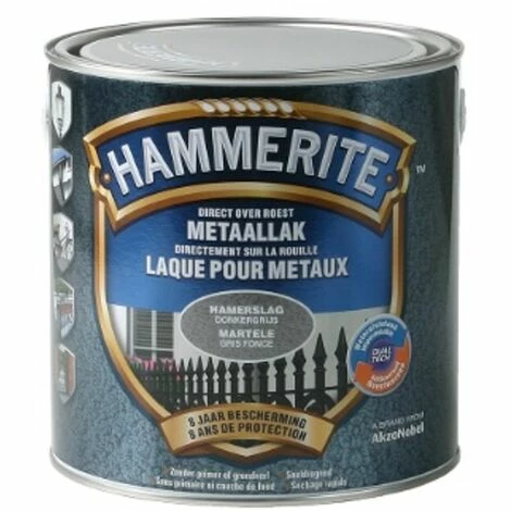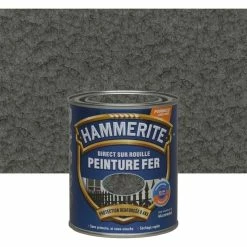 La laque martelée Hammerite est une peinture de finition à base d’une formule unique, spécialement conçue pour la protection et la décoration du métal. Elle s’utilise sur tous les métaux ferreux en intérieur et extérieur. Elle s’applique directement sur la rouille et possède une excellente résistance à la corrosion et aux intempéries. Son séchage rapide permet l’application de plusieurs couches en quelques heures. Finition décorative d’aspect martelé.