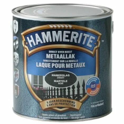 La laque martelée Hammerite est une peinture de finition à base d’une formule unique, spécialement conçue pour la protection et la décoration du métal. Elle s’utilise sur tous les métaux ferreux en intérieur et extérieur. Elle s’applique directement sur la rouille et possède une excellente résistance à la corrosion et aux intempéries. Son séchage rapide permet l’application de plusieurs couches en quelques heures. Finition décorative d’aspect martelé.