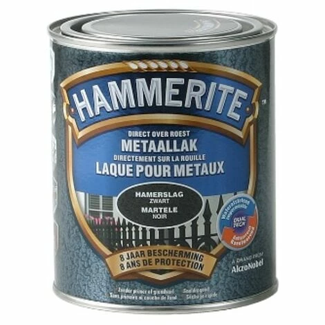 La laque martelée Hammerite est une peinture de finition à base d’une formule unique, spécialement conçue pour la protection et la décoration du métal. Elle s’utilise sur tous les métaux ferreux en intérieur et extérieur. Elle s’applique directement sur la rouille et possède une excellente résistance à la corrosion et aux intempéries. Son séchage rapide permet l’application de plusieurs couches en quelques heures. Finition décorative d’aspect martelé.