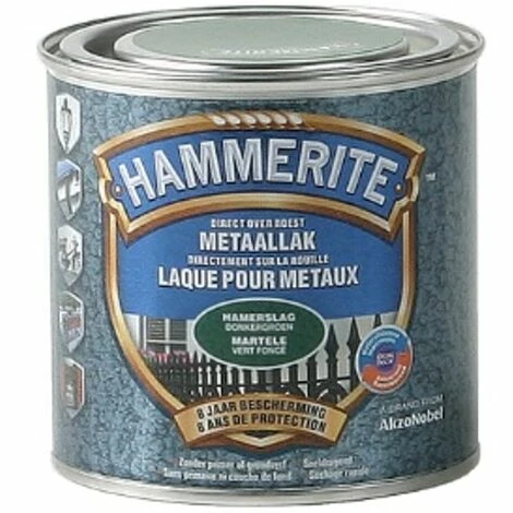La laque martelée Hammerite est une peinture de finition à base d’une formule unique, spécialement conçue pour la protection et la décoration du métal. Elle s’utilise sur tous les métaux ferreux en intérieur et extérieur. Elle s’applique directement sur la rouille et possède une excellente résistance à la corrosion et aux intempéries. Son séchage rapide permet l’application de plusieurs couches en quelques heures. Finition décorative d’aspect martelé.